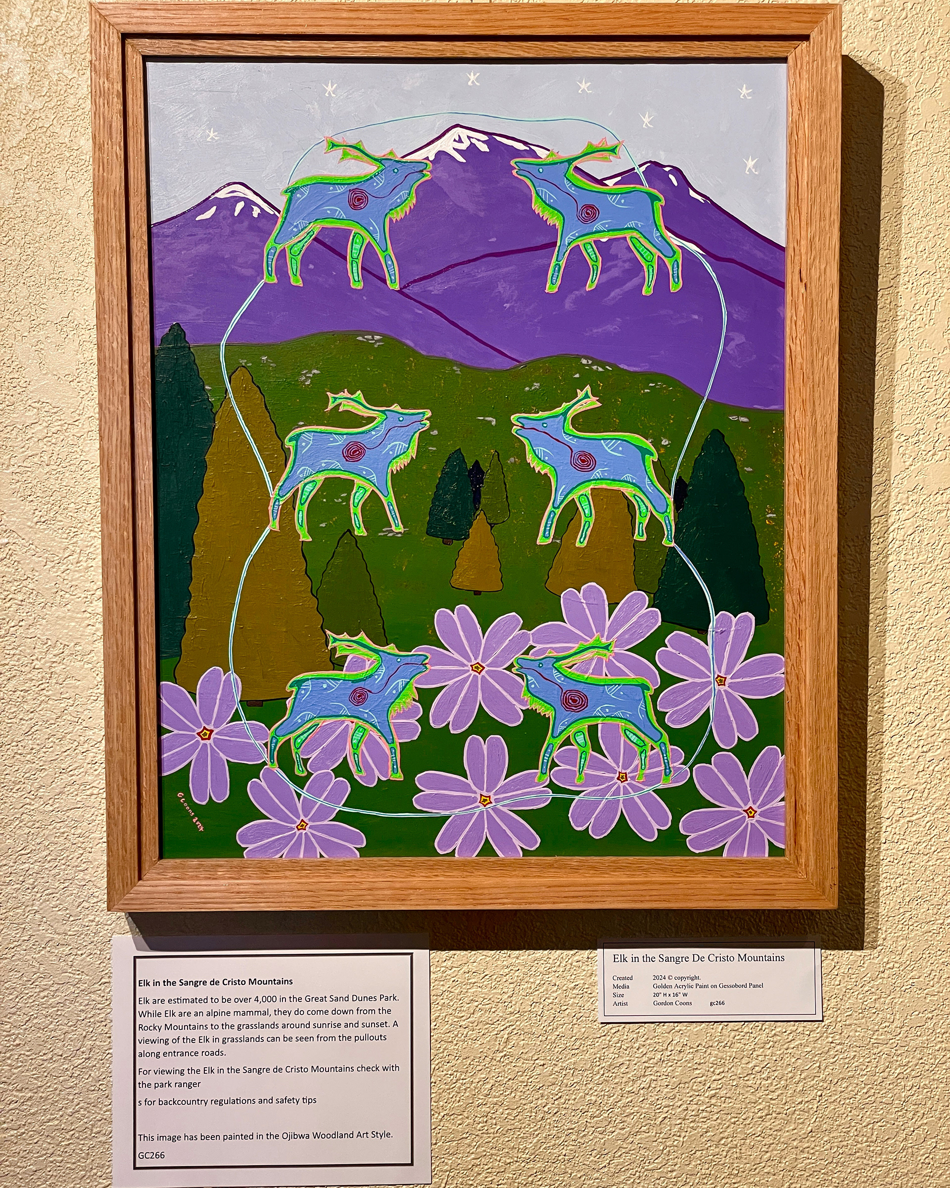 Just installed in the Great Sand Dunes National Park and Preserve Visitor Center art exhibit space this November are new paintings by Gordon Coons, an Ojibwa / Ottawa artist. I've been working with him for the last couple of years to prepare for this show.